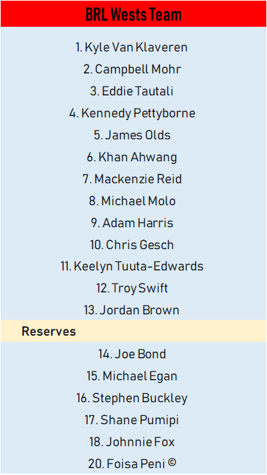BRL Wests Team List