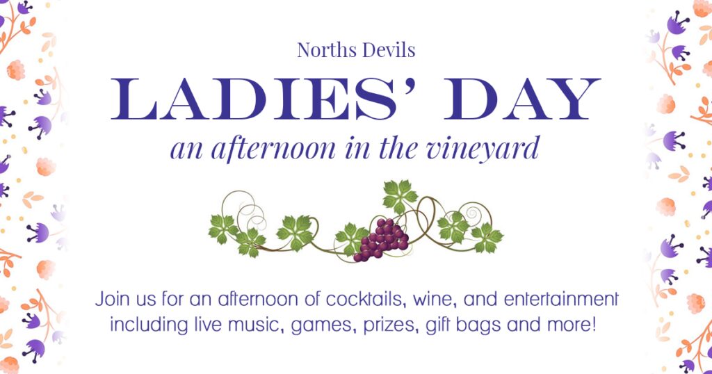 Ladies Day at the Norths Devils is back for 2022 – Join us for a day in the Vineyards for wine tasting and selected cocktails Paired with delicious canapes.