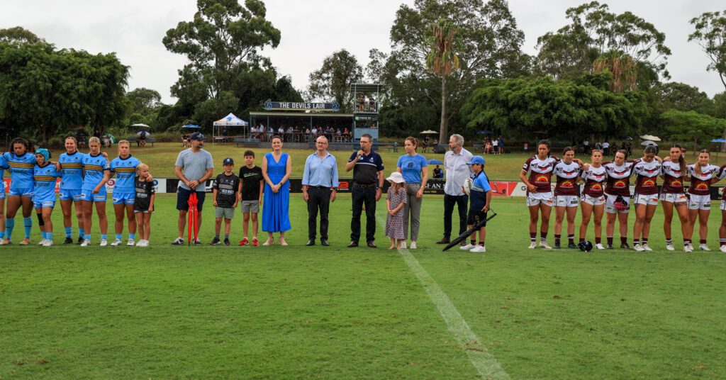 A short ceremony took place at the commencement of the round 1 fixture to mark the Devils’ entry into the BMD Premiership. Federal Sports Minister Anika Wells presented the match ball to Jada Ferguson of the Norths Devils and Zahara Temara, captain of the Burleigh Bears.