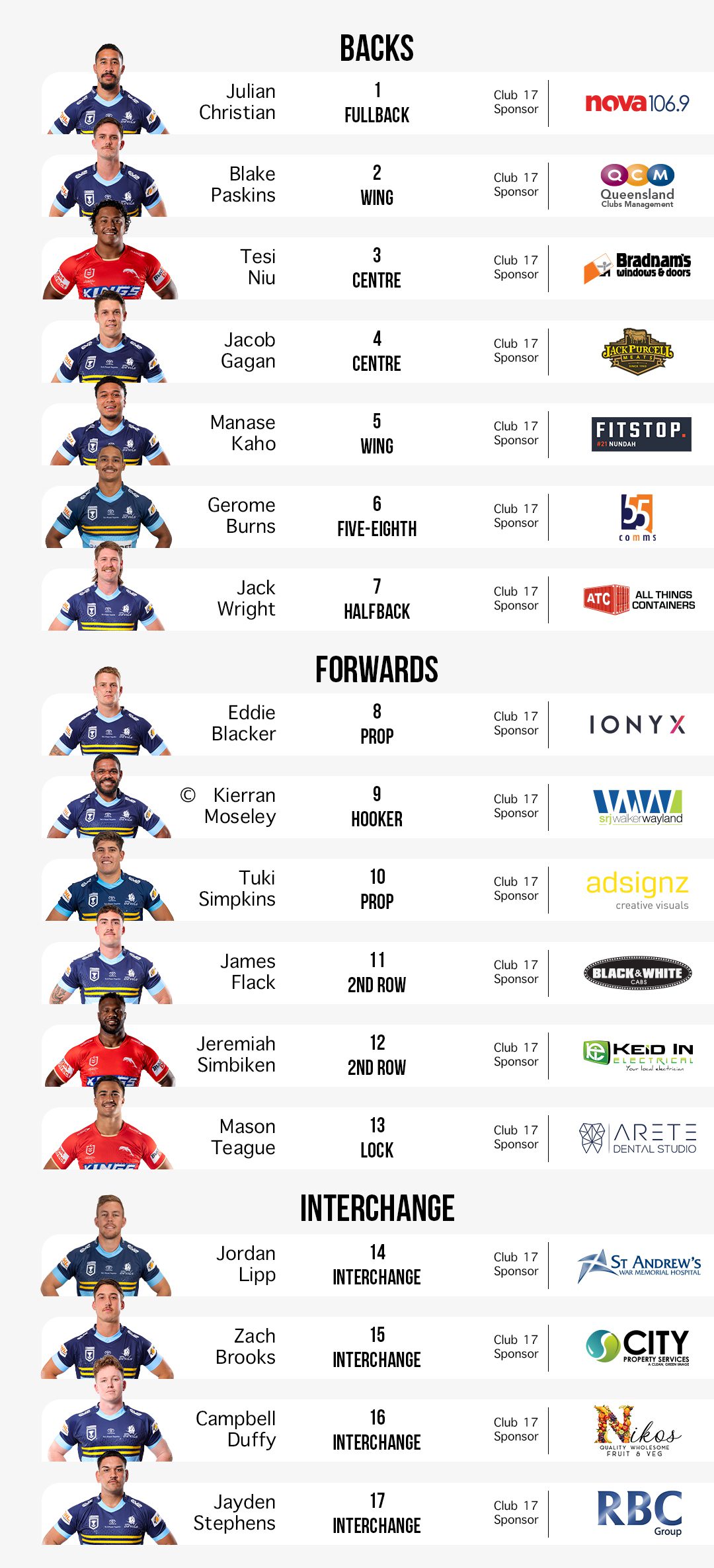 In contrast, the Seagulls are set to field three players who represented the Devils that day – Connor Broadhurst, Jon Reuben and Bryce Donovan.